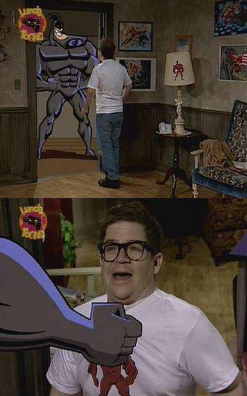 - David (the author of Shortpacked) showed up at one point and fought Ethan. They then pudding wrestled (that was Robin's idea). Eventually the fight was broken up by Maggie (the writer's girlfriend), who demanded they exchange info and deal with it like adults (read: Maggie and David broke into Ethan's house and smashed up the place). Why were they fighting? David kept editing Ethan's Transformers Wiki page.
