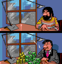 More modern uses of the trope are more cynical, and may feature the character getting their wealth through unethical or illegal means, and discovering that wealth doesn't make them happy, (i.e. The Great Gatsby) and might include an Anvilicious statement on why sudden wealth leads to corruption. If the plot for a single episode, will usually feature the character becoming haughty and vain and eventually losing his or her money and returning to normal, showing that they never needed money in the first place. The darkest and edgiest versions of this trope sometimes overlap with From Nobody to Nightmare.