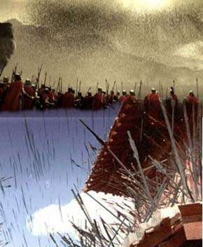 - In Romance of the Three Kingdoms, Zhuge Liang uses one of these to replenish his ammunition supplies in the lead up to the battle of Red Cliff.[2] With Zhuge's ships hiding in a fog, Cao decides that its too risky to attempt boarding them and instead relies on a hail of arrows to kill anybody who happened to be on deck. Zhuge used mats and straw dummies to collect the arrows. Once he was satisfied with his haul, Zhuge sailed off, only to reuse them in his attack against Cao's army. So famous is this maneuver that the Chinese saying "孔明借箭“ came directly from this. Translated literally, it means "Kong Ming (Zhuge Liang's nickname) borrows arrows."