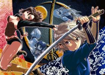AmbiguouslyGay: Himemaru. He wants to marry Raizou, partly because of the power of the Katana clan, and partly because he's fallen for him. But he's not stereotypically gay at all. He's a bit of a flirt toward Raizou, and seems to have the "over-the-top femininity" of a Lipstick Lesbian, despite being male. It's complicated.- Animate Inanimate Object: Raizou's mother's funerary tablet. Among other things, it has fallen over (and set itself back up) to show approval, shot out of his rucksuck to hit him in the face, and scrape warning messages on the ground to him.