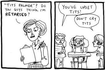 And the kids are no better: only last week Dirty Lying Little Two-Faced came running home from school, sobbing his eyes out, and their youngest, Ghastly Spotty Horrible Vicious Little is just at the age when taunts like 'she's a git' really hurt. |