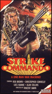He seems to have only two settings as an actor. On one hand, you have the emotionally sappy everyman Reb Brown who just wants a normal life (as caretaker of his mentally handicapped friend in Cage, a soldier telling a little Vietnamese boy about Disneyland in Strike Commando, or a wandering artist who just wants to see America in Captain America). Then you have the Reb Brown who breaks loose and BLOWS SHIT UP! Its not uncommon to see both performances in the exact same movie.