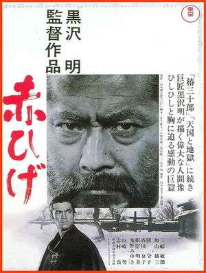 Red Beard (赤ひげ Akahige) is a 1965 film directed by Akira Kurosawa, based on the short story collection Akahige shinryotan (赤ひげ診療譚) by Shūgorō Yamamoto. It stars Toshiro Mifune as Dr. Kyojō Niide, nicknamed "Red Beard".
