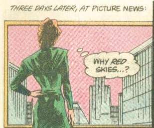 - Lampshaded during DC's Last Laugh storyline, where The Joker, after "jokerizing" most of the worlds villains and cutting them loose on the planet, begins complaining that the sky is perfectly clear and normal, and that he's going to have to "kick it up a notch" in order to achieve the desired sky effect. The crossover also had some traditional Red Skies Crossovers. Pretty much the only tie-ins that were actually important to the main story were written by Last Laugh writer Chuck Dixon (Nightwing, Robin, Birds of Prey, JLA). Most of the other tie-ins were simply "Jokerized villain goes off to tangle with the hero of whatever book this is".