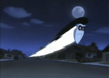 - Freakazoid! sometimes travels as a head on a zig-zag bolt of electricity/lightning.