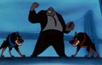 - In Oliver and Company, ruthless loan-shark Sikes has a pair of vicious Dobermanns (pictured above), who go about intimidating both the main characters and their impoverished "master" Fagin, and follow Sikes' will with gusto.
