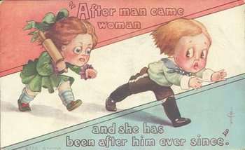 - In Sappo, by Popeye creator Segar, John Sappo is always in danger of being bopped by his wife, and several strips involve his attempts to circumvent this. In one arc, he constructs a series of special, protective cages to wear, made of transparent metal, so his wife can't see what's stopping the rolling pin. He then sells several of these cages to other Henpecked Husbands, much to Mrs. Sappo's confusion. ("He's selling nothing and getting money for it!")