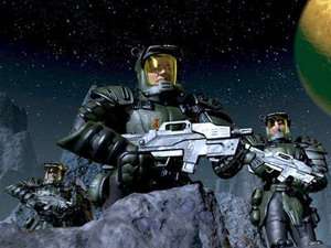 - It's Raining Men: The orbital drops for the Mobile Infantry reappear here.