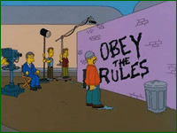 - In the episode "Take My Wife, Sleaze", Homer pulls his motorcycle up beside Chief Wiggum in his car, who expresses his desire to put Homer and his newly formed motorcycle gang behind bars. Homer derisively points out that Wiggum can't hassle them because they're going at the speed limit.