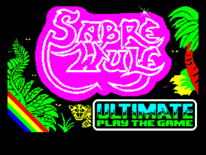 There exists two different games carrying the same name: the 1984 original, a ZX Spectrum Action Adventure starring Sabreman, a British explorer who finds himself trapped in a deep labyrinth-esque jungle chasm and now must find his way out of it by finding 4 pieces of an amulet. However, on his path he'll have to fence against jungle creeps of various sizes, natives and the titular Sabre Wulf, an implacable wolf who appears at times and is better dealt with by running away. Besides the amulet pieces, Sabreman can also collect different treasures for points and colored flowers that grant him temporary special abilities (increased speed, invulnerability) or disadvantages (inverted controls). The game got ported to a few other computers of the time, like the Commodore 64 and Amstrad CPC.