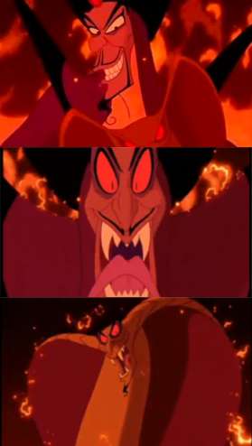 - In Disney's Aladdin, Jafar transforms into a humongous snake after gaining sorcerer powers from the Genie. He actually has Aladdin and company on the ropes for quite a while until Al tricks him into trying to gain even more power by using his last wish to become a Genie. In hindsight, Jafar should have stuck to the reptile form.