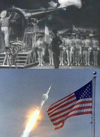 - Jules Verne's From the Earth to the Moon (the early silent film of which provides the page photo) describes the astronauts and their spacecraft being fired from a giant gun. Launching a spacecraft in that manner would thoroughly kill the astronauts from excessive G-forces, which is why real manned spaceflight is done with staged rockets.