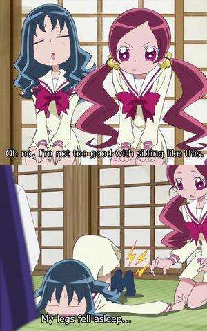 - Kashimashi: Girl Meets Girl: Yasuna and Hazumu can sit in seiza; Tomari and Asuta can't.