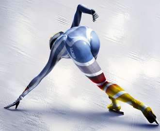 - And of course the trope image - speed skating outfits. Although technically not spandex (they're made of different material), they have the same effect. Somewhat unique in this trope as this applies to both male and female athletes.