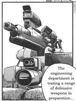 - Mutant Future has the Robo-Turret, which defended government installations before the end of civilization. It combined some kind of firearm with either a grenade launcher or a missile launcher.
