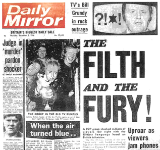 - Smarmy Host: Bill Grundy, pictured in the newspaper headline at the top of this page. The reason guitarist Steve Jones dropped the f-bomb is because Grundy made an explicit pass at Siouxie Sioux.