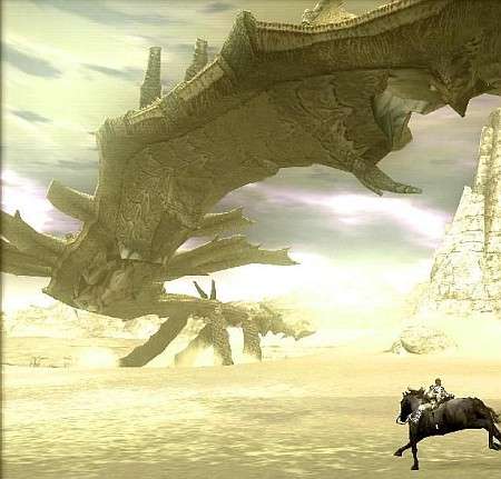 - Boss Game: There are no wild monsters to get in the way or slow you down. Just you, sixteen Colossi scattered across miles and miles of Scenery Porn, and a sword which points in their general direction.