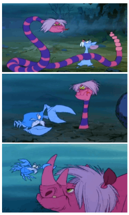 - The Sword in the Stone, as the page quote indicates. Madame Mim and Merlin engage in a wizard's duel that involves this. Merlin beats Mim's pink dragon form by turning into a germ and infecting her.