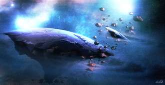 Maybe magic or science has Gone Horribly Wrong, causing an Earthshattering Kaboom, or maybe something else bad has happened, but a former planet is now broken into small pieces, floating through space. If this trope is used as a setting, these pieces will usually have settlements of some sort on them (not to be confused with Asteroid Thickets, which are normally just obstacles).