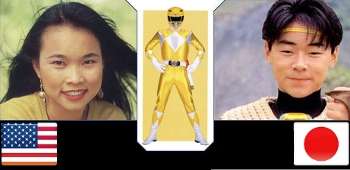 - The female Yellow Rangers in many of the Power Rangers shows were guys in the original Super Sentai, presumably changed to try to avoid The Smurfette Principle. (The most noticeable clue to this fact is that while the Pink Ranger tends to have a skirt, the Yellow does not.) In fact, Zyuranger's Tiger Ranger, who became the first Mighty Morphin Yellow Ranger, was, by a funny fluke, named Boi. This hasn't happened since Wild Force, though, because the Japanese Sentai series have been putting two girls in the cast more frequently these last years, as well as the fact it was becoming increasingly difficult to try to pretend that the morphed males were actually females.