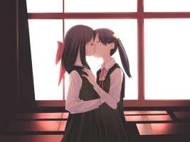 Shojokyuu ~Kurige no Shiofuki Shoujotachi~ is a purely yuri Visual Novel H-game from 2004 by developer and publisher Mini. One should note that for better or worse, the art style makes the characters look younger than they actually are. An Omake for the game was released in 2006 focusing on a couple of side characters.