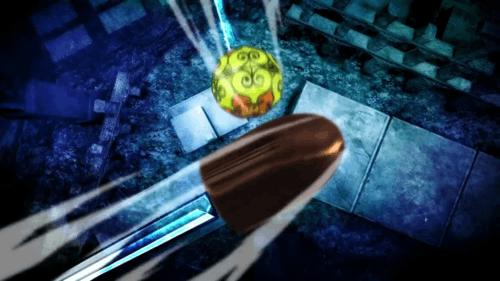 - Happens during the final duel in Versus, when KSC 2-303 and The Man pull guns on each other during the sword fight and empty their clips at each other, followed by a shot of the collided bullets falling to the ground.