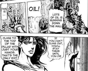 - Lisa Lisa from JoJo's Bizarre Adventure puts Joseph Joestar through a number of grueling exercises, including placing a "breathing correction" mask that forces him to either breathe in the proper manner required to use Hamon or suffocate, and kicking him down a pit and forcing him to climb up an oil-drenched pillar.