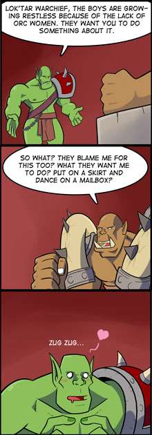 - Toyed with in the No Fourth Wall webcomic 1/0. Marcus, existing in a world consisting of only male characters, has no concept of women and tries to flirt with the guys instead. Tailsteak clarifies that Marcus isn't gay, "he's just settling for second best," then introduces a female character to clear things up for Marcus. (Said female character is gay, just to annoy the cast.)