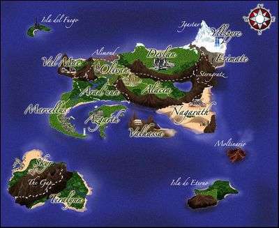 It's current incarnation is the mostly-Post Apocalyptic, growingly Steampunk world of Skylessia, which consists of a vast continent with a number of outlying islands, as well as the new, unexplored island of Teraskyrn. After "Generation I" ended, there was an invasion by the Legions of Hell. Things didn't go well. After the invasion ended, the world restructured as a series of brand new nations. Alimond, a highly militaristic state founded by Kraid Kaflar, it's currently the most technologically advanced state, and maintains a fleet of Airships; Araducia, a nation in the middle of a civil war that borders the Deadzone; The Deadzone itself, a land infested and controlled by the invading demons; Marcellus, a rich merchant oligarchy, and one of the few states that survived basically intact from the demonic invasion; Nagarath, a desert theocracy that borders the deadlands; The Northern Territories, an area filled with feuding factions; Sk'harrah, a land ruled by Manaketes, currently undergoing some minor internal strife; Teraskyrn, the mostly unexplored continent to the east; The heavily isolationist Valhassan Empire; and the Wilds, an area held by five feuding bandit queens.