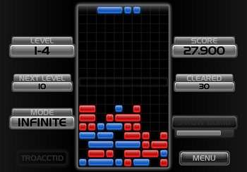 - Infinite, a slow-paced and cerebral mode in which you can only slide one block at a time, and each time you do, another row drops down. However, you're given unlimited time to think about each move you make.