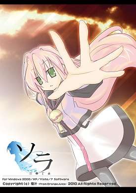 sora is a Prequel to the fan-acclaimed SUGURI, a horizontally-scrolling doujin Shoot'Em Up by Orange_Juice released during Comiket 78 for Windows PC. Just like its predecessor, it stars a title protagonist, Sora, who must fight her way through waves of Mecha-Mooks with a boss waiting at end of each stage. sora's storyline takes place on a once peaceful world being ravaged by an ongoing war between humans and altered humans. It was a war that brought chaos, death, destruction, and the end of any moral values that will ultimately bring an end to all life on Earth. Sora, one of the most powerful altered-humans ever created, is unwilling sent into battle to settle the score. Like Suguri before her, Sora can amass a large arsenal of weapons at her disposal, ranging from beam rifles, bazookas, energy swords, and even a pile bunker thrown in for good measure. The game maintains its trademark dashing and lock-on shooting gameplay, but this time Sora's able to three weapons instead of two (generally an energy weapon, a ballistics weapon, and a close-range weapon). The game also improved on its combo-scoring system and adds more emphasis on funneling through enemy fire to restore lost life energy and building up energy for your Hyper Attacks.