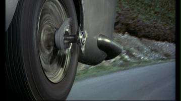 - James Bond had a car that popped retractable barbed spikes from the center of his wheels that destroyed enemy tires, originally used on the Aston Martin in Goldfinger.