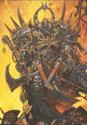 - Pretty much all of Chaos in Warhammer Fantasy Battle and Warhammer 40,000. They actually use the spikes on their armor and vehicles to impale the heads of slain foes/victims and eventually make a gruesome trophy rack. At least one Chaos army book has included "Spiky Bits" as a piece of equipment that makes its bearer more effective in combat. That guy up there in the picture? He's a good example.