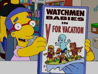 Milhouse: Mr. Moore, will you sign my DVD of Watchmen Babies? Which of the babies is you favorite? |