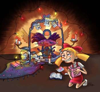 - Heloise of Jimmy Two-Shoes has a very Helga-esque shrine of Jimmy. Unlike Helga, though, her interest in Jimmy is downplayed and used as a cute contrast to the fact that she's a horrid little undead engineer who spends her days working to create instruments of torture, and her free time to beat or murder anyone who looks at her funny.