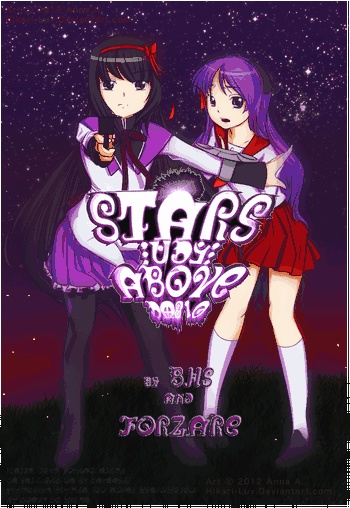 Stars Above is an ongoing fanfic written by tropers BHS and Forzare. Based loosely on the events of the Kagami Hiiragi Snuggling After Sex RP on the TV Tropes Forum, the story is a Puella Magi Madoka Magica/Lucky Star Intercontinuity Crossover.