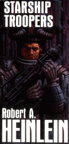 Starship Troopers is a Military Science Fiction novel written by Robert A. Heinlein as an argument against a unilateral U.S. ban on nuclear testing, and published in 1959. It waxes Anvilicious on the merits of soldiers being willing to give their lives for their country and the proper merits of a soldier, an officer, and an army and nation as a whole. Having no combat experience himself Heinlein, an ex-naval officer, interviewed infantry soldiers and officers to get the "flavor" of ground combat for his book. The story traces the evolution of Juan "Johnnie" Rico from feckless civilian into an Officer and a Gentleman during the Bug War as a Framing Device and example. Much of the military action in the novel parallels the Pacific campaign of World War II ending at Guadalcanal.