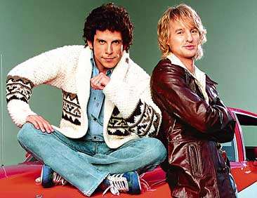 In 2004, a Starsky and Hutch movie directed by Todd Phillips was released, starring Ben Stiller and Owen Wilson as Starsky and Hutch (respectively), spoofing the original TV series. Two streetwise undercover cops in 1975, driving in a red 1975 Ford Gran Torino, bust drug criminals with the help of underworld player, Huggy Bear (played by Snoop Dogg). The film functions as a sort of prequel to the TV series, as it portrays when Starsky was first partnered with Hutchinson. The film also switches the personalities of the title characters. While in the TV show, Starsky was curious, laid-back, and streetwise, and Hutch was very serious and by-the-book. In the film, Starsky is the serious cop, and Hutch is laid-back. There are four Frat Pack members in this film, although not all are in major roles.