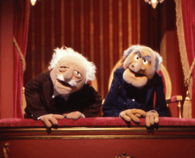 Good snark being a precious inspirational resource, it's no surprise then that Statler and Waldorf have been appearing in other media. They've set up shop in YouTube, as well as here on All The Tropes. Though not nearly as well known, this pushes them into the group of memetic characters who inhabit the wiki along with Brian Blessed, The Toblerone, Alice and Bob, Report Siht and many others.