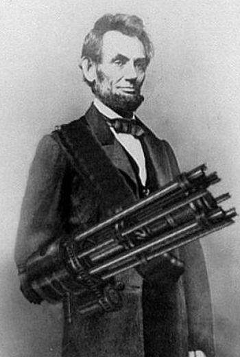 - The Grand Finale of Batman the Brave And The Bold opens with a short of John Wilkes Booth trying to kill Lincoln- and he fails, thanks to a space-time-hopping Batman. Seconds later, Booth whips out brass armor with steam-powered gattling gun arms. This is an alternate universe with a different timeline, as Batman subtly mentions on his way back home at the end of the short- after pounding Booth into submission, with a little help from Honest Abe himself.
