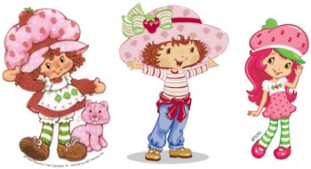 Strawberry Shortcake started life as a greeting card character in the early 1980s, but soon spawned a line of popular dolls and other merchandise, accompanied by six TV specials released annualy from 1980 to 1985. In these specials she and her friends lived in Strawberryland, raising berries and taking care of the occasional villainy concocted by The Peculiar Purple Pieman of Porcupine Peak.