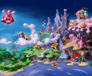 - Rayman: In the first game, they have a world made entirely of musical instruments, a world based on pencils and a final level made entirely out of candy.