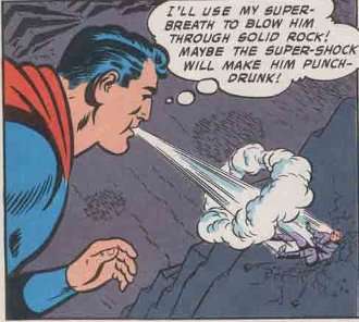 - Superman has not only super breath in the usual sense, but also the ability to survive indefinitely underwater or in space, and exhale blasts of ultra-cold air.