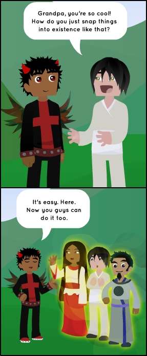 - In El Goonish Shive, Immortals can give people magical abilities.