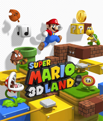 Super Mario 3D Land is a 3D Mario platformer that came out in November 2011 for the Nintendo 3DS. Unlike earlier 3D Mario games, the style of 3D Land is essentially a blend between 2D and 3D Mario: Many elements, from linear level structure to Super Mushroom-based health to old-school power-ups like the Tanooki Suit, have been implemented into the 3D games for the first time. It's best described by Shigeru Miyamoto himself as "...more like a 3D Mario that plays like a 2D Mario game."