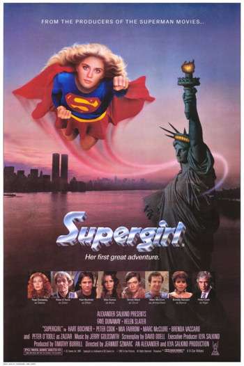 - Canon Immigrant: The headband Supergirl began wearing in 1984 (and was wearing when she died in Crisis on Infinite Earths) was added at the request of the film's producers, who wanted DC's Supergirl to look like the movie version. DC agreed to the change—and then the producers changed their minds. Screen test images of Helen Slater wearing the headband can be seen here.