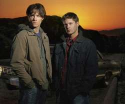 Supernatural is an incredibly Angst-heavy show based around a Monster of the Week structure topped off with an over-reaching arc, while simultaneously retaining humor through various means of Leaning on the Fourth Wall. It features Dean (Jensen Ackles) and Sam Winchester (Jared Padalecki), two brothers who hunt creatures based on Urban Legends, Classical Mythology and Judeo-Christian theology. The first season featured the brothers searching for their missing father, but, for the most part, the series features them Walking the Earth as they travel from town to town in search of supernatural problems to solve. It uses a diverse score of classic rock songs that feature heavily throughout, to encapsulate the gritty rock-and-roll life they lead, and features Dean's 1967 Chevy Impala as almost a third character.