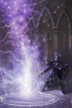 - The Eldritch Blast of the Warlock is always colored purple in the various books' art. Several of the Warlock's powers are shown to glow purple.