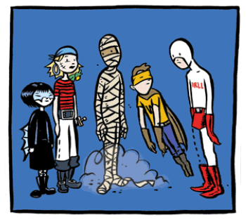 - The Pirates Who Don't Do Anything: Aside from Arrrleen being a literal example, none of the characters are ever shown fighting crime or doing anything else you might expect superheroes to do. This is lampshaded in the very first strip.