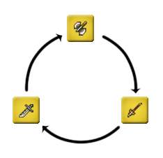 - The online MMORPG RuneScape has a 'combat triangle' of ranger (archer or other missile attacks) ➞ mages ➞ melee fighters who defeat rangers, etc.